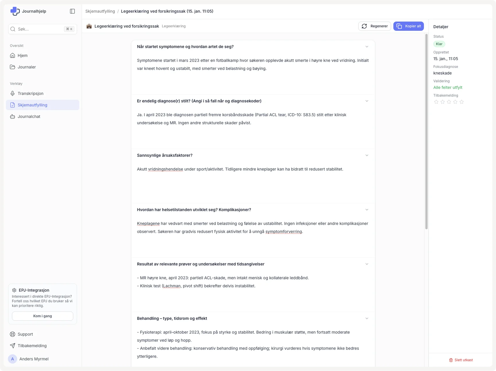 Last opp journalen og få ferdig utfylt skjema på minutter.