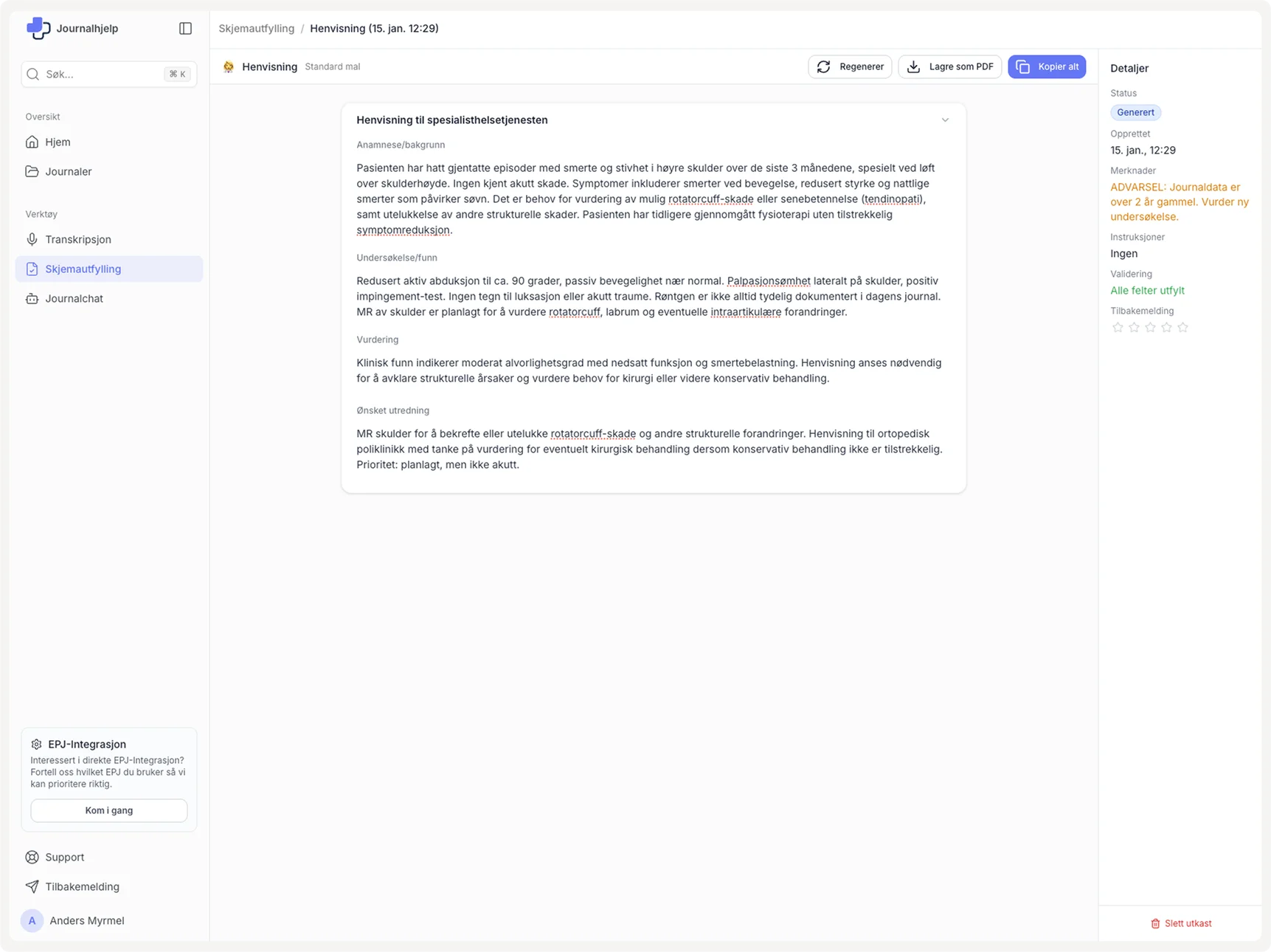 Se hvordan Journalhjelp forenkler utfylling av henvisning.